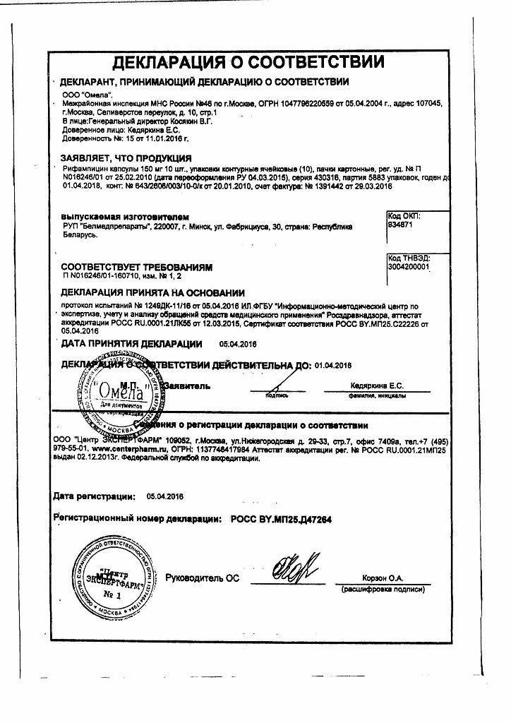 1 капсула содержит рифампицина 0,15 г.