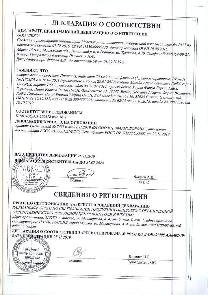 Форма выпуска, упаковка и состав препарата Пропицил®