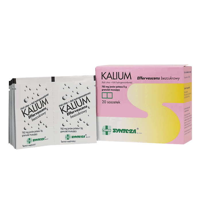 Применение. Для взрослых рекомендовано принимать в первой дозе 1 или 2 пакетика, а затем в зависимости от дефицита калия: от 1-2 пакетиков в день. Для детей старше 12 лет дозировку определяет лечащий врач. Kalium принимается во время или в конце приема пищи. Содержимое пакетика следует растворить в 1/3 стакана теплой воды и выпить слегка газированную жидкость.