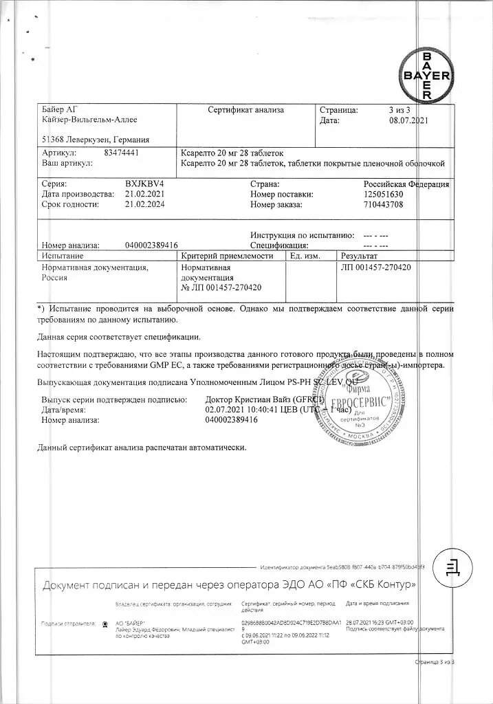 Форма выпуска, упаковка и состав препарата Ксарелто®